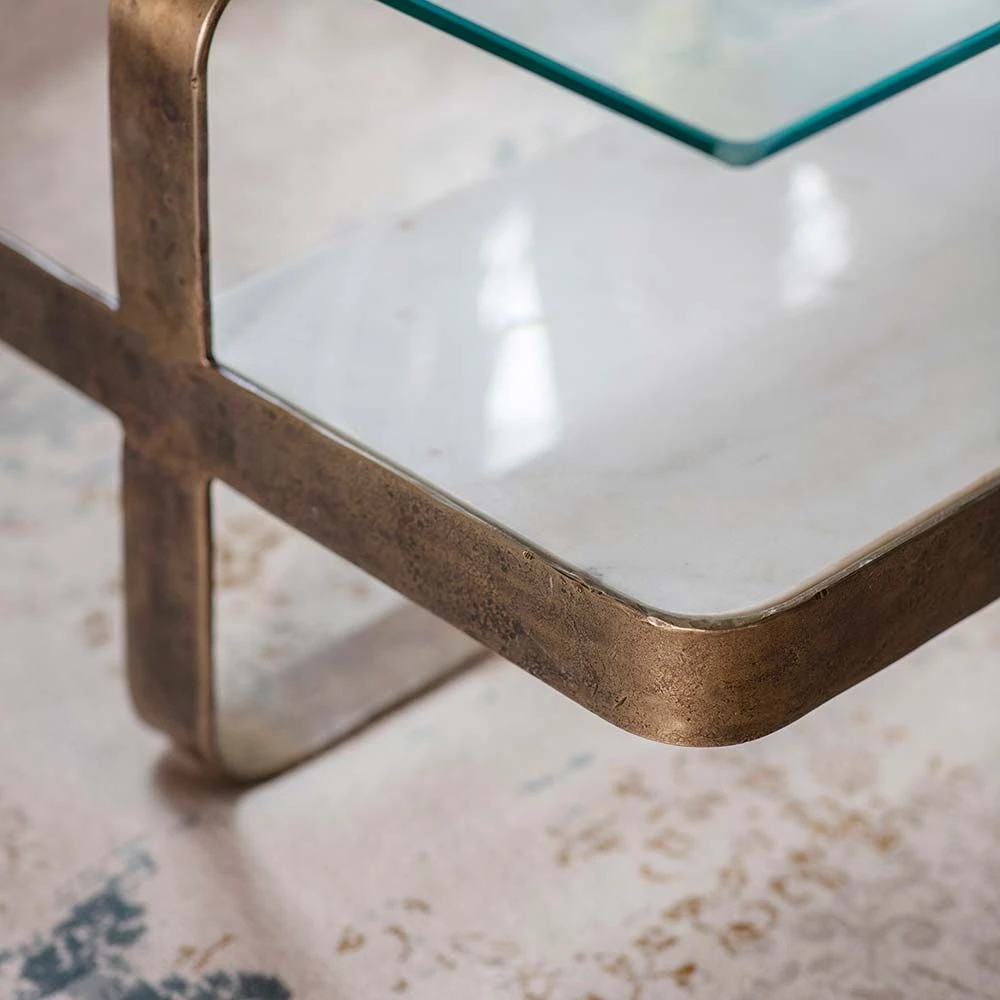 Check out the Japanese styling of our new Atelier Coffee Table, with its balanced platform effect crafted from an antique brass plated metal frame, marble and toughened glass. Practical and eye-catching, it will complement all kinds of interior spaces, from ultra-modern rooms to traditional settings and even Industrial and Mid Century Modern design. There’s plenty of space for stacks of books and magazines as well as room for drinks and nibbles while you relax with a box set or two.