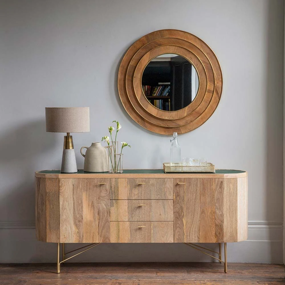 With its Art Deco feel and unusual step design that features luxurious brass edges, our new Ava Wall Mirror will provide the perfect finishing touch to any room. Made from natural mango wood with brass cladding, the circular design suits any scheme and any style of interior, including classic, contemporary, industrial, Art Deco or a more eclectic mix. Use in the living area, dining room, hallway, landing, bedroom or bathroom.