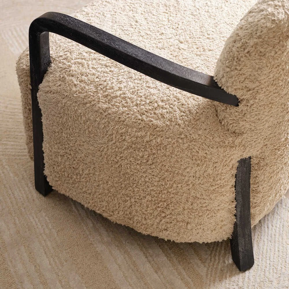 Expertly crafted with sustainable mango wood arms and legs, which are stained black for contrast, the cosy upholstered cotton rug seat and back just long to be snuggled up on.