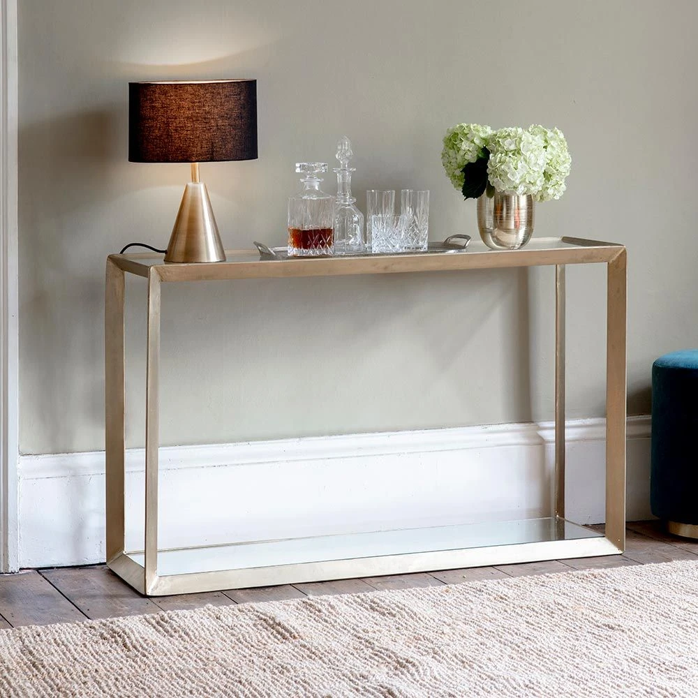 A console table is such a handy piece of furniture, as it can be used in any room or communal space to provide handy extra storage or somewhere to display an attractive table lamp and keep things like keys, phones and chargers within easy reach. Our Belvedere Console Table oozes luxury with its brass plated frame, glass top and mirrored bottom. And for a co-ordinated finish, check out our matching Belvedere Side Table and Coffee Table, too.