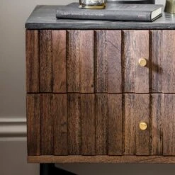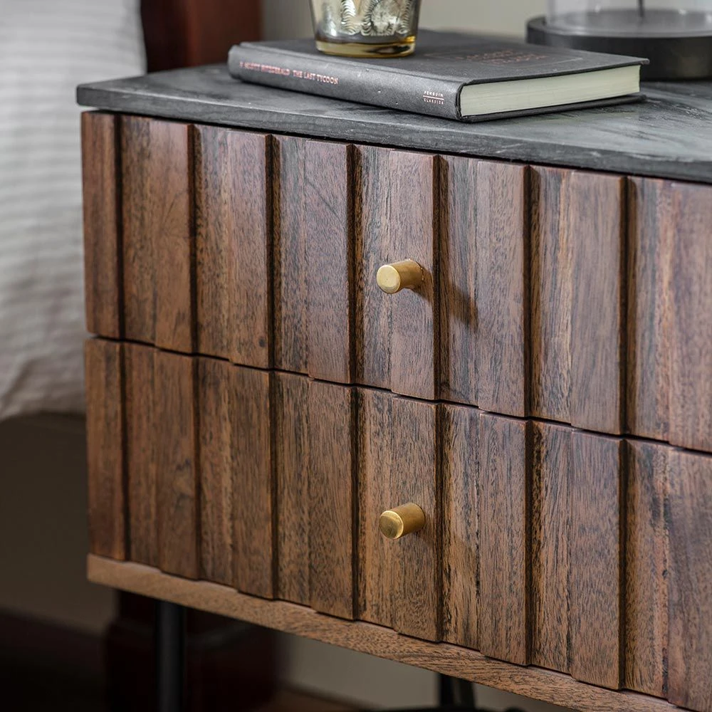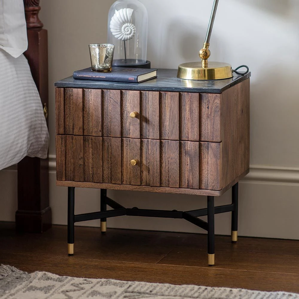 Ideal for both classic and contemporary interiors, our new Berkeley Marble Bedside Drawers are sleek and elegant made from acacia wood, powder coated black iron legs with brass detail and black marble top. There’s plenty of room for storage in the two drawers while a matching collection is also available for a fully co-ordinated look throughout your home.