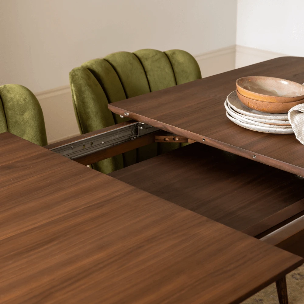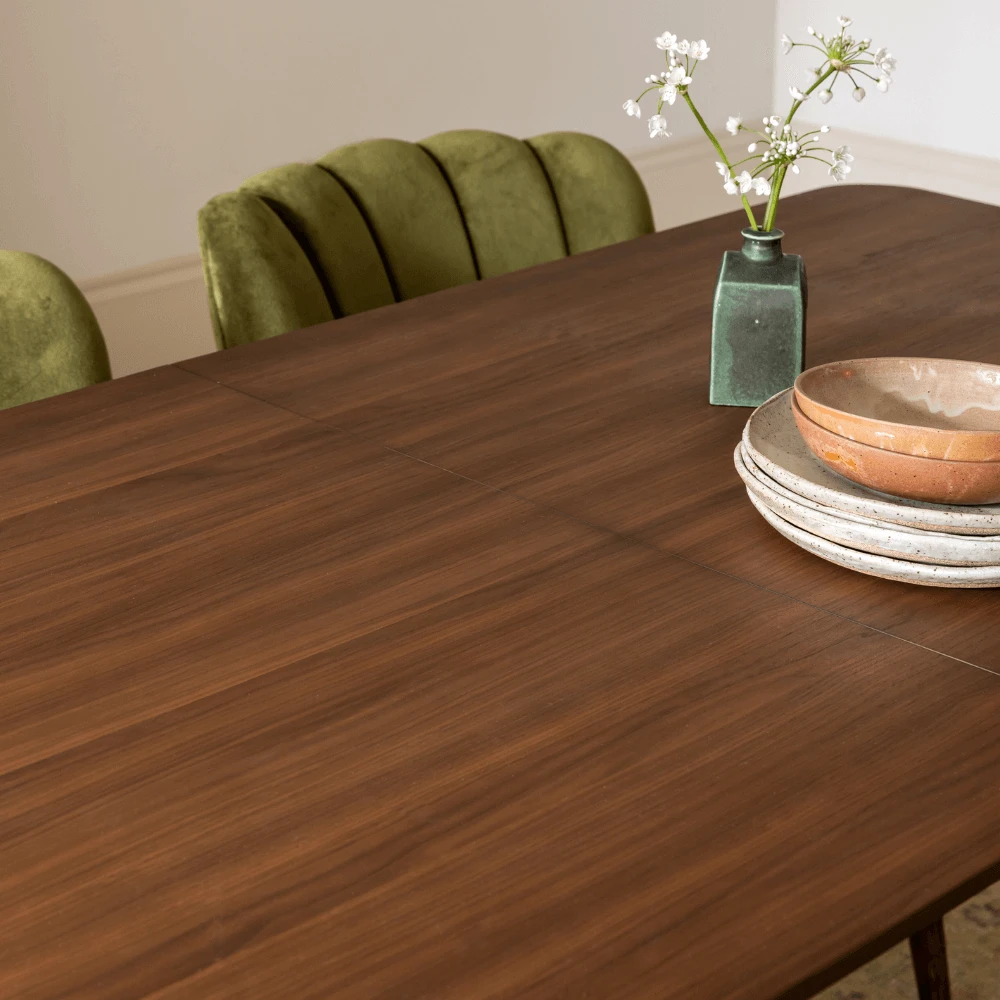 A mid-century inspired design, our large Byron Dining Table measures a generous 180cm in length, which extends to 240cm when entertaining. With its timeless vintage look, this elegant table has an easy to use butterfly extending action and can seat up to ten people comfortably, perfect for family get-togethers, special occasions and celebrations.