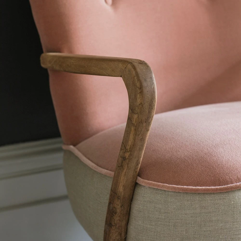 Calvin Armchair In Champagne Pink Velvet And Linen