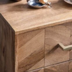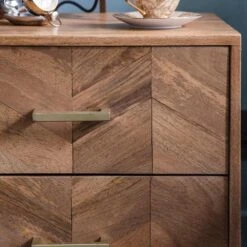 An eye-catching cabinet perfect for master bedrooms, teen rooms, guest rooms or even a home office, our Chevron Bedside Drawers provide plenty of storage for night-time essentials with two drawers and a detailed natural mango wood design. The brass plated frame and handles add a luxury touch and for a co-ordinated effect, our matching Chevron Chest of Drawers will give your room a feeling of boutique hotel chic.