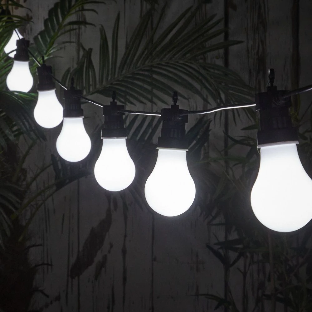 Each string of festoons has 20 bulbs, and if you need a longer length of lights you can join up to 4 sets together to operate off one power supply.