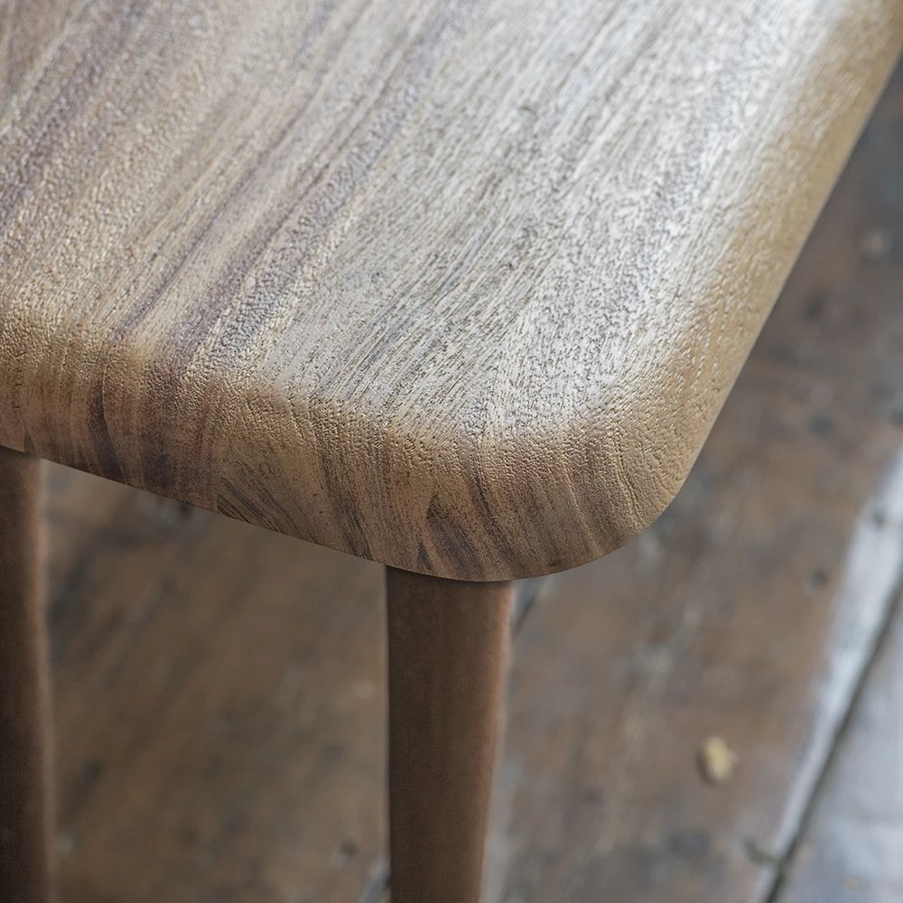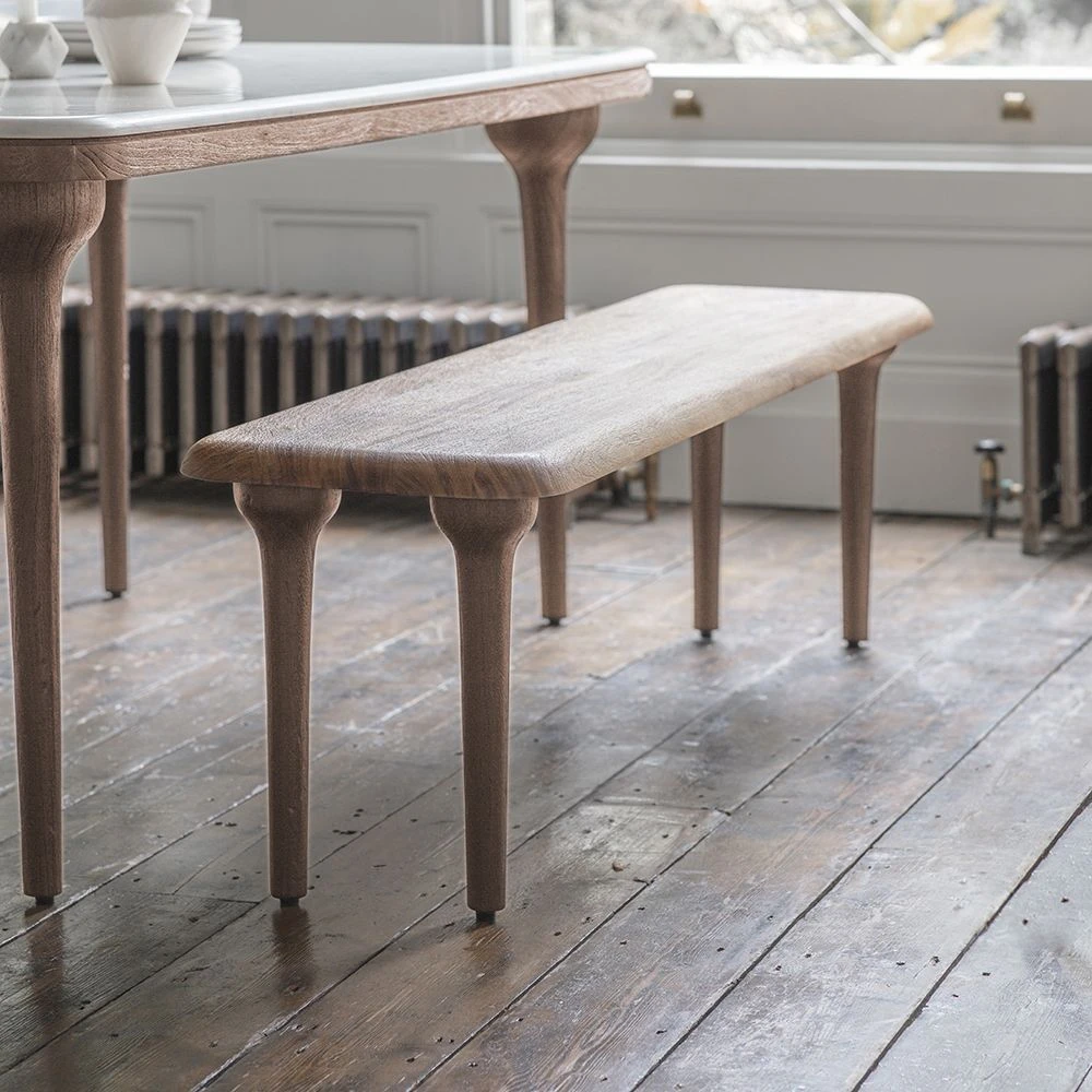 Made from solid acacia wood, with robust, solid turned wooden legs, this hand crafted bench has been skilfully wire brushed to draw the natural wood grains out for a more tactile feel.