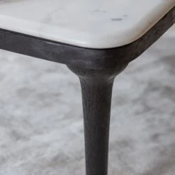 Combining cool white marble with solid acacia wood and robust solid turned wooden legs, this hand crafted coffee table has been skilfully wire brushed to draw the natural wood grains out for a more tactile feel.