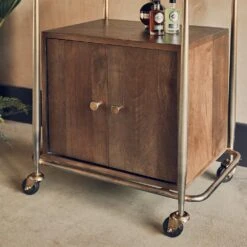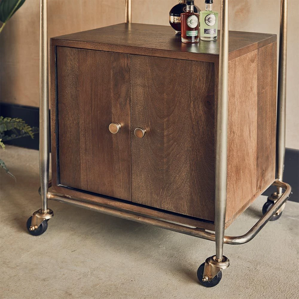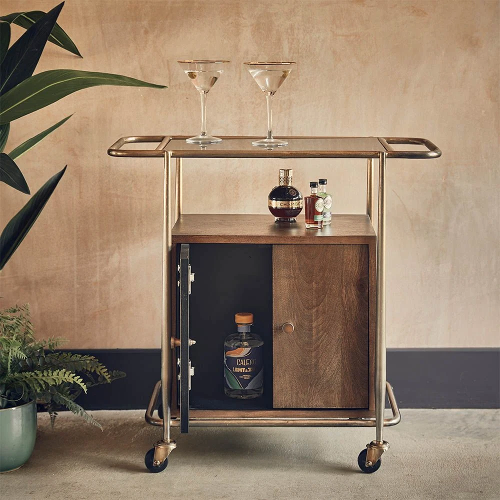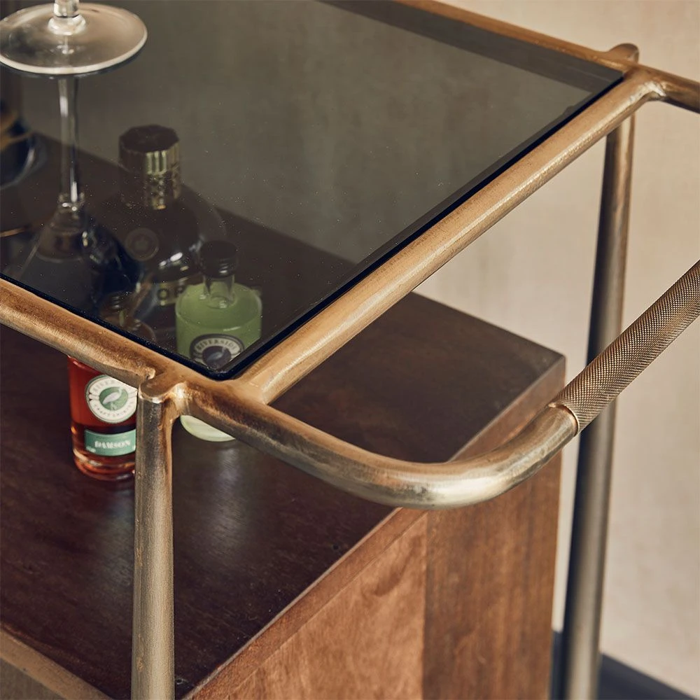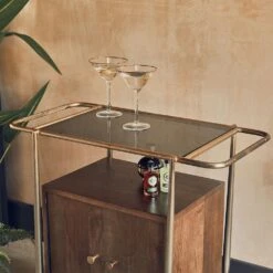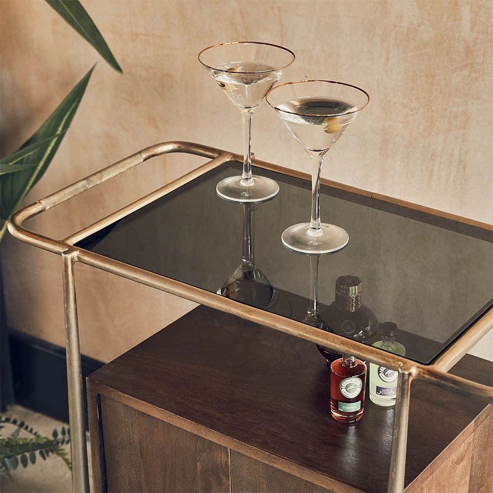 With its dark stained wood design and luxurious glass and brass plated frame, our Cuba Drinks Trolley with Storage is a multifunctional storage and serving unit, perfect for anyone who loves to entertain.