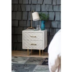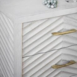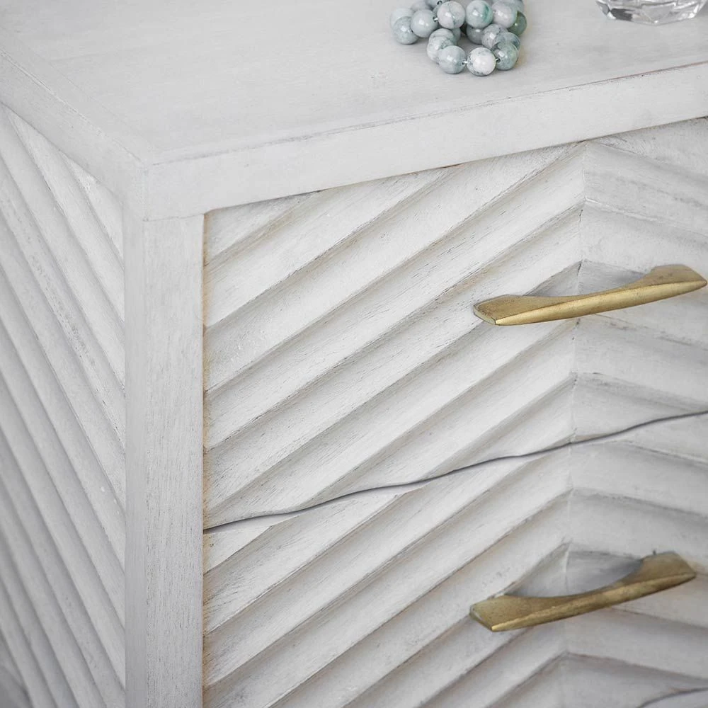 Create a focal point in the bedroom or guest room with our striking Fandango Bedside Drawers. The ridged whitewashed mango wood finish is complemented beautifully with brass-plated legs and handles while the two-drawer design provides plenty of handy storage. A matching sideboard, chest of drawers and media unit are also available for a fully co-ordinated look throughout your home.