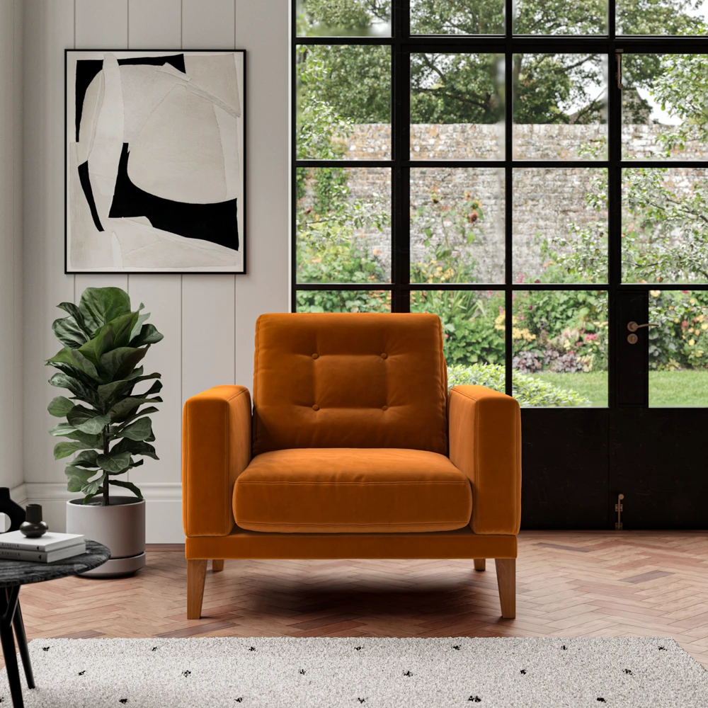 With its mid-century look and feel, this contemporary seating range features tapered legs, button back detail, a supportive back and armrests and is ultra-comfortable.