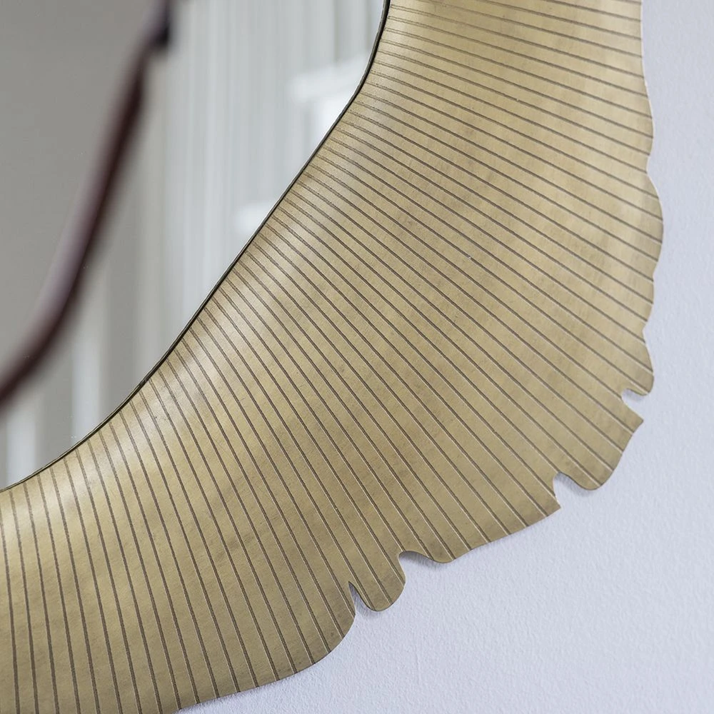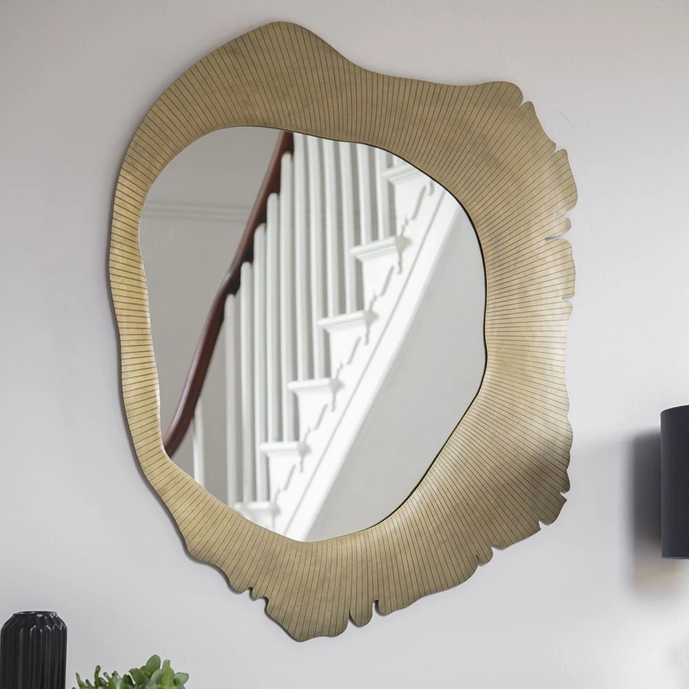 Add a focal point to your living space, dining area, hallway, or bedroom with our abstract shaped Form Mirror. This hand crafted iron mirror has an acid etched finish that catches the light and shimmers, making dark spaces feel lighter and brighter in an instant. The organic shape is unusual and eye catching, and together with the wood colour making it as much a piece of art as it is a mirror.