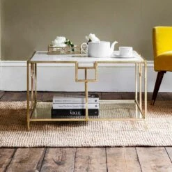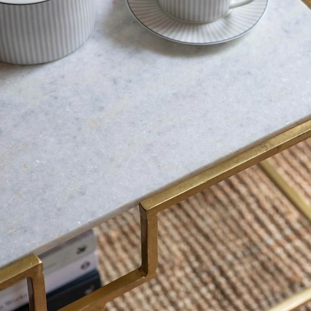 Embrace your inner Jay Gatsby and bring the Art Deco look into your living room with our elegant Gatsby Coffee Table. One of the most beautiful periods in history, the 1920s offer endless inspiration in interior design. With a brass plated frame, marble top and glass bottom, its generous size makes it perfect for large, open plan spaces. For a co-ordinated feel, we also have a matching console table, bar trolley and nesting side tables too.