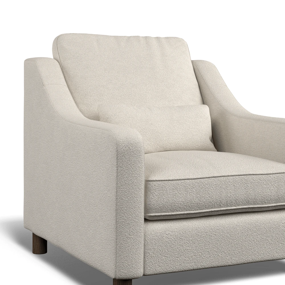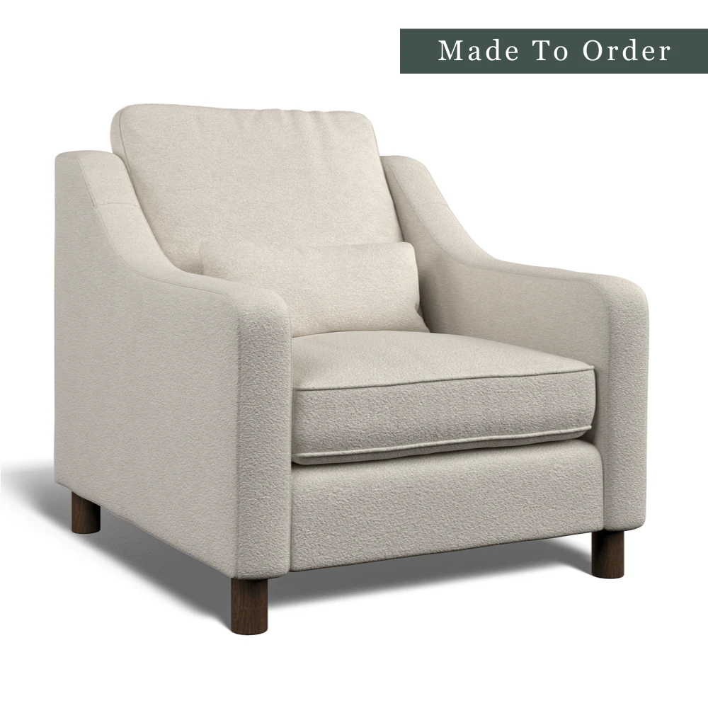 Each armchair is made to order and upholstered in your choice of either Bouclé (2 colours available) or Easy Clean Eco Velvet (8 colours available).