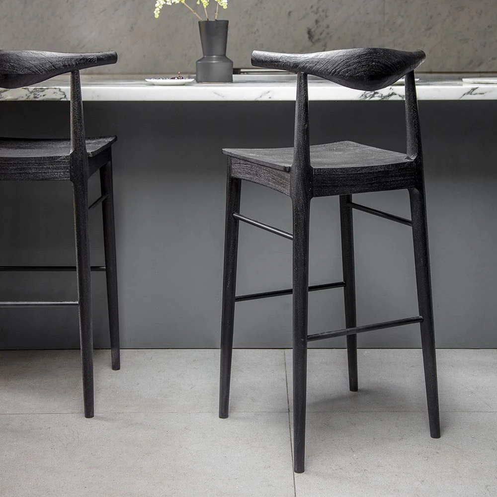 This classic designer shaped stool has a minimalist shape that brings understated luxury to a kitchen or bar area, with a wire brushed wood finish that draws out the natural wood grains.