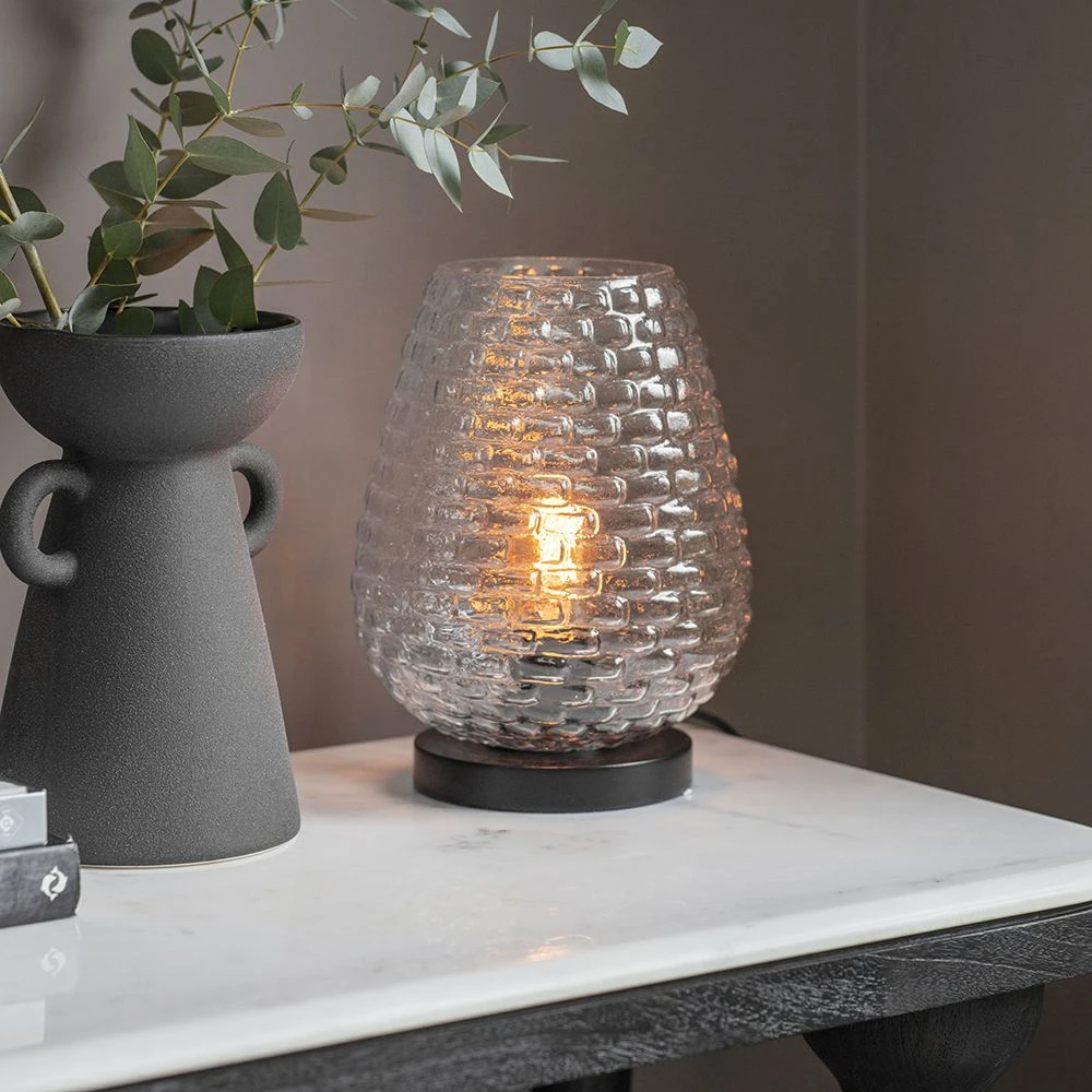 Compact and beautifully crafted, our Hive Glass Table Lamp brings textural appeal to any space. Perfect for hallways, living areas and bedrooms, it brings classic charm and beauty to any interior.