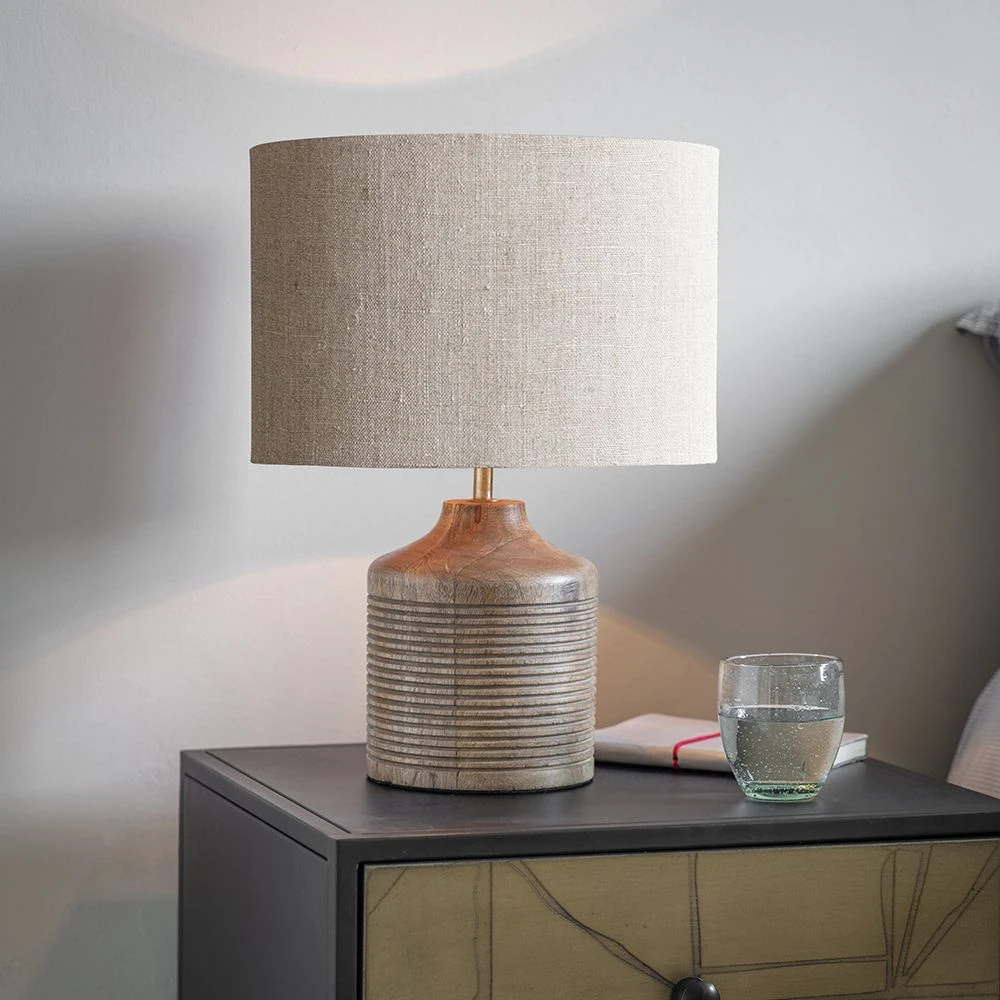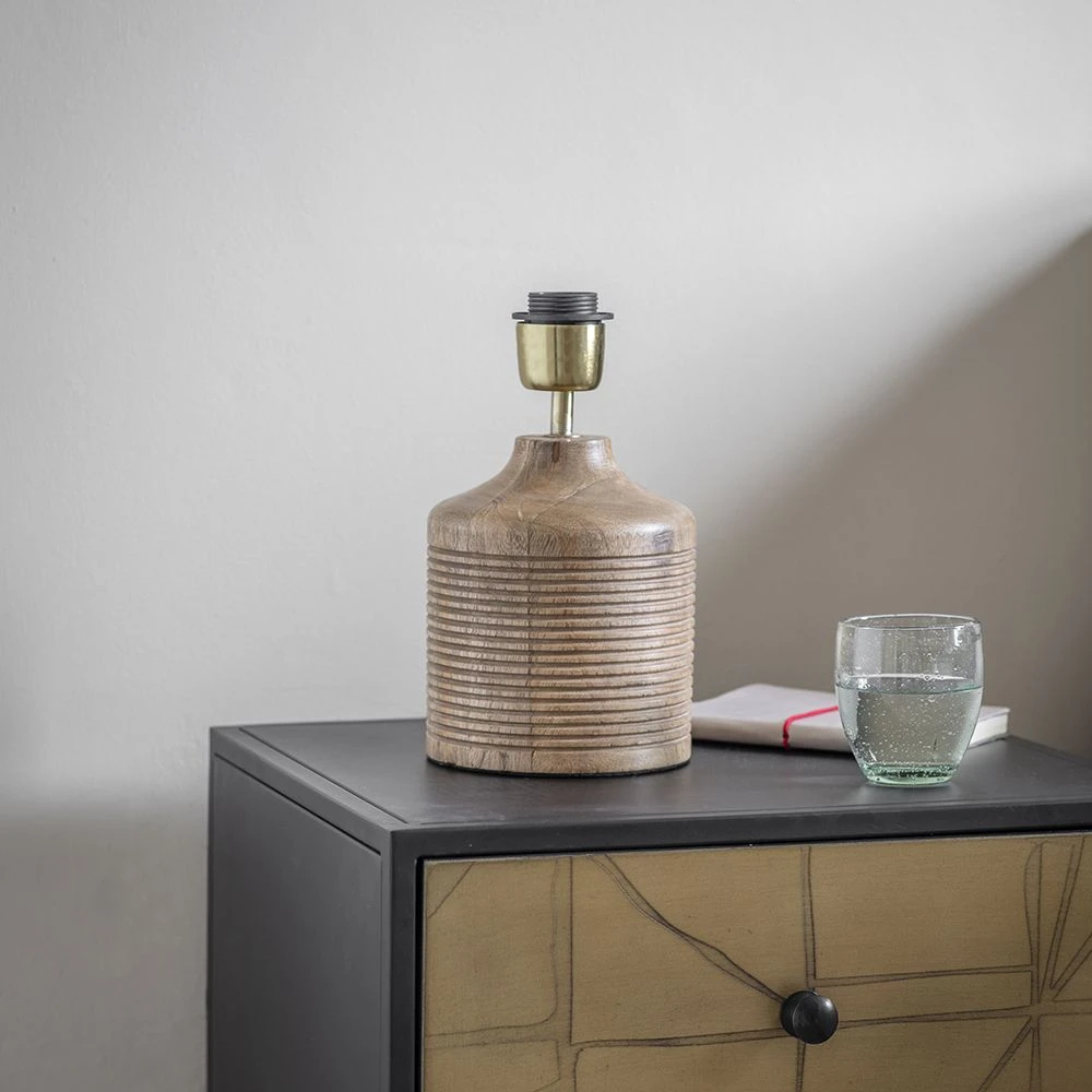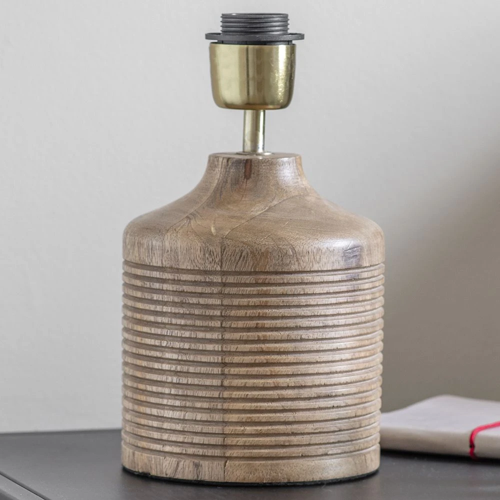 A sturdy and solid wooden table lamp base made from sustainable mango wood, our ILSA Table Lamp creates a soft glow to highlight a side table, bedside table, window sill, sideboard or shelving. The solid mango wood design features hand crafted horizontal grooves for an on-trend fluted, textured look while the natural and organic design looks great teamed with a neutral or grey lamp shade for effortless chic.