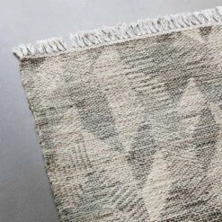 Each strand is woven with care to create this gorgeous rug, and its subtle geometric design and gentle colour palette exudes a rustic charm that complements rather than outshines your room décor.