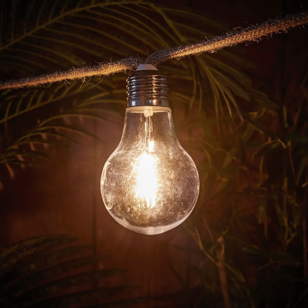 Our indoor/outdoor connectable Jute Rope Festoon Lights feature 20 LED bulbs on a rustic jute rope string for that homespun look.
