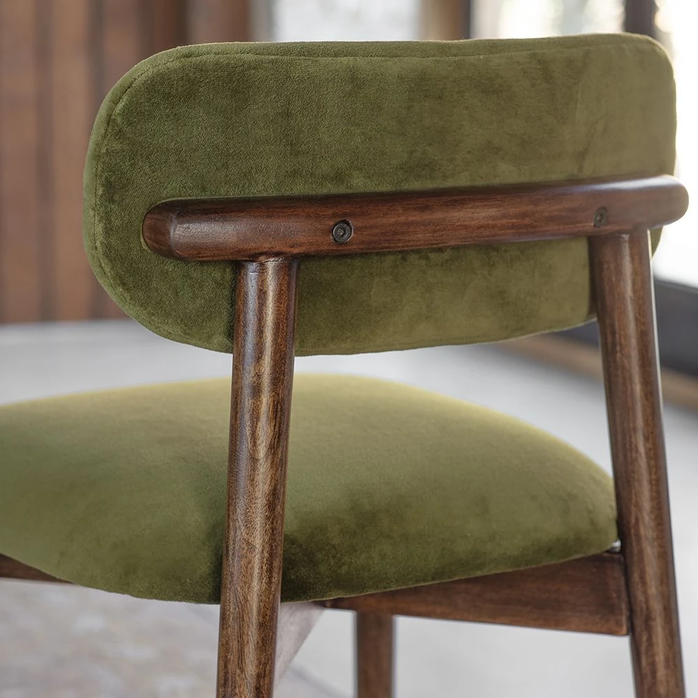This is a wonderful chic and stylish green velvet dining chair perfect for any modern home with an easy living retro vibe.