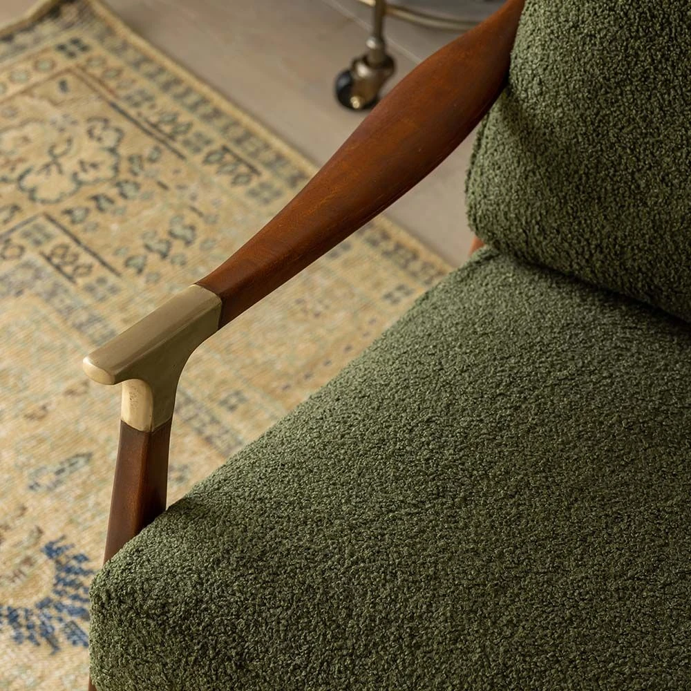 | Materials | Acacia Wood, boucle upholstery |
