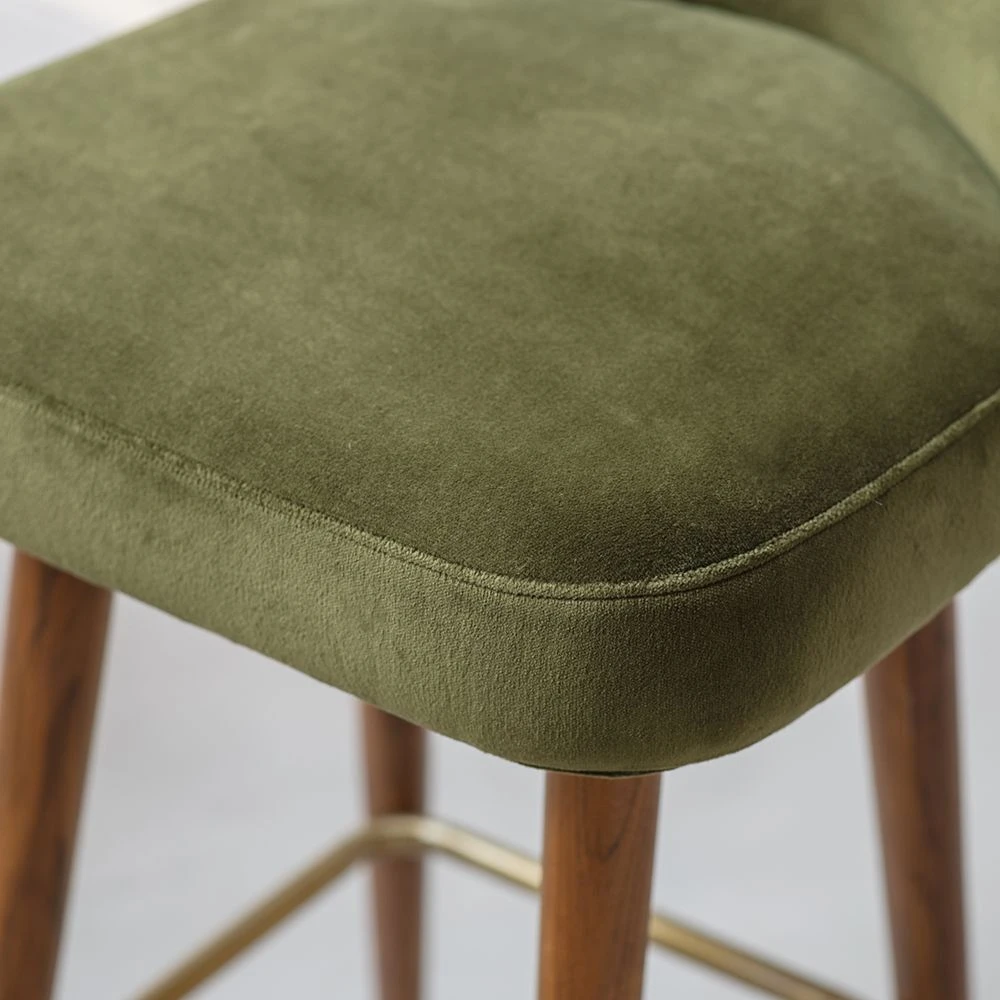Great for kitchen islands and breakfast bars, the stool features a brass metal detail on the base while its elegant silhouette is finished beautifully with refined and tapered legs with a contemporary mid wood finish that effortlessly matches both traditional and more modern room schemes. We love this deep green โ it works as an alternative to grey as a colour that goes with most colours and interior schemes โ it feels rich and luxurious yet fresh and new.