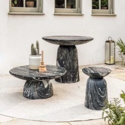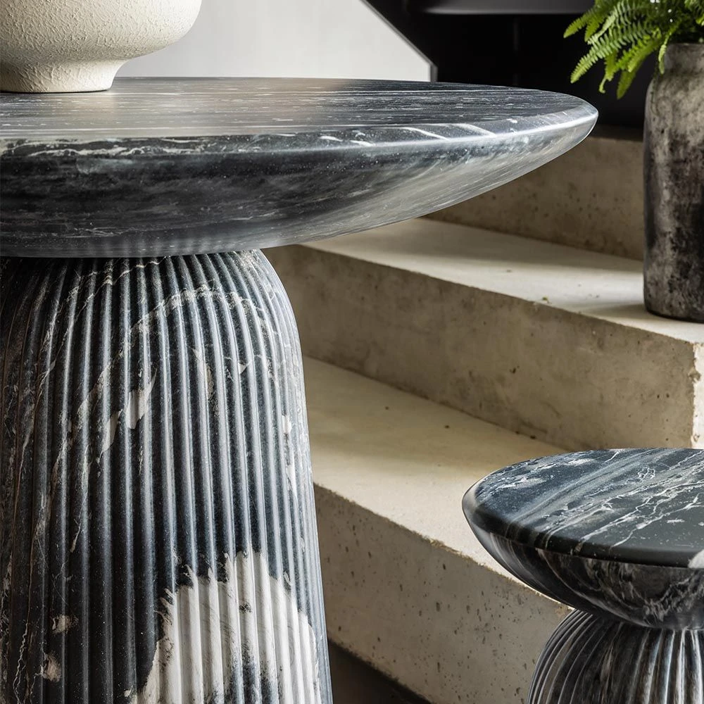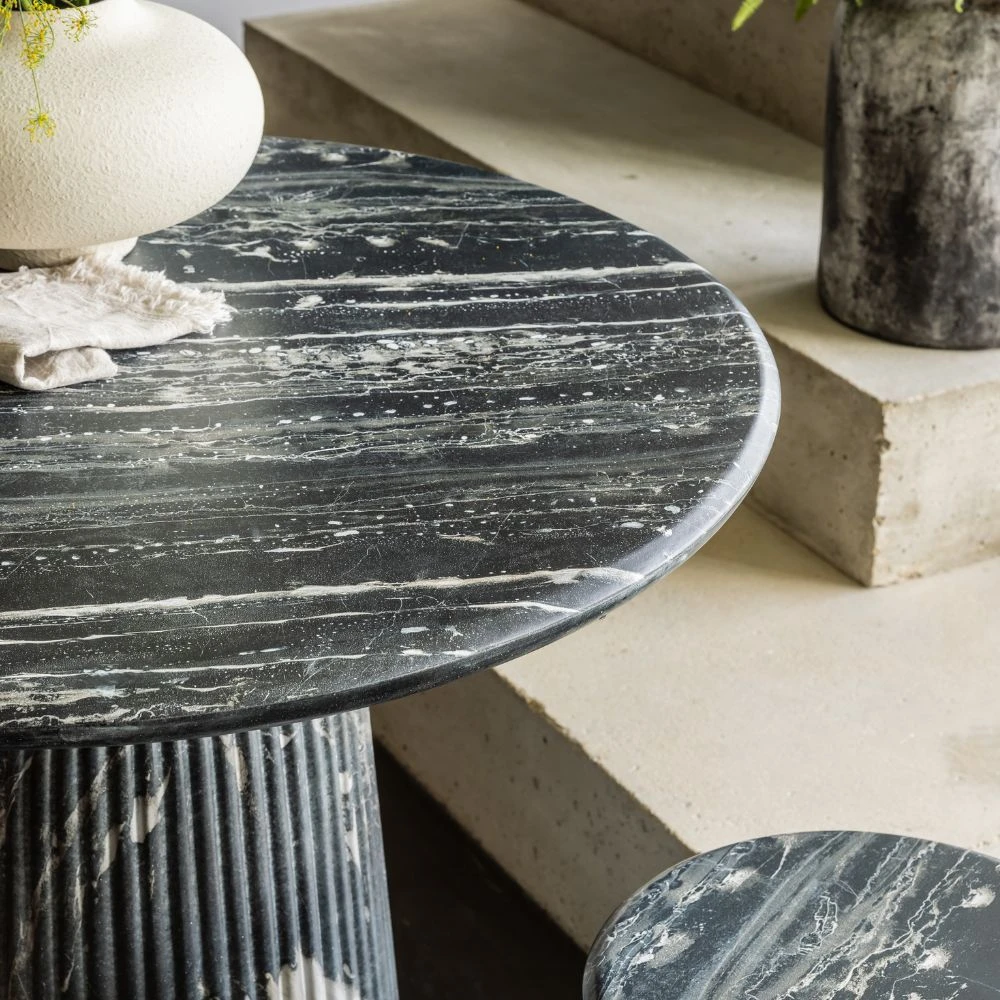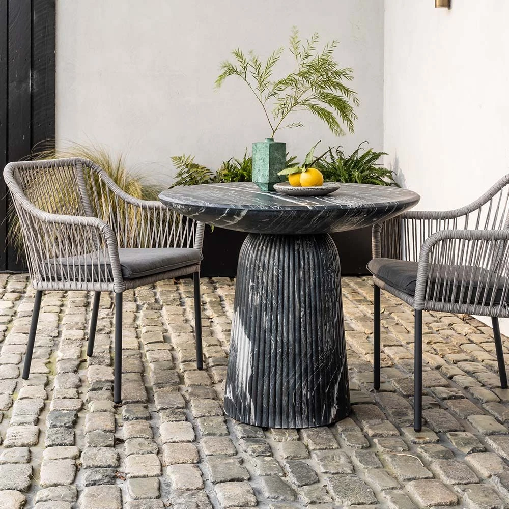 Inspired by classic Roman Italian marble columns, the Mason dark grey marble effect dining table will bring a classical feel to both indoor and outdoor spaces.