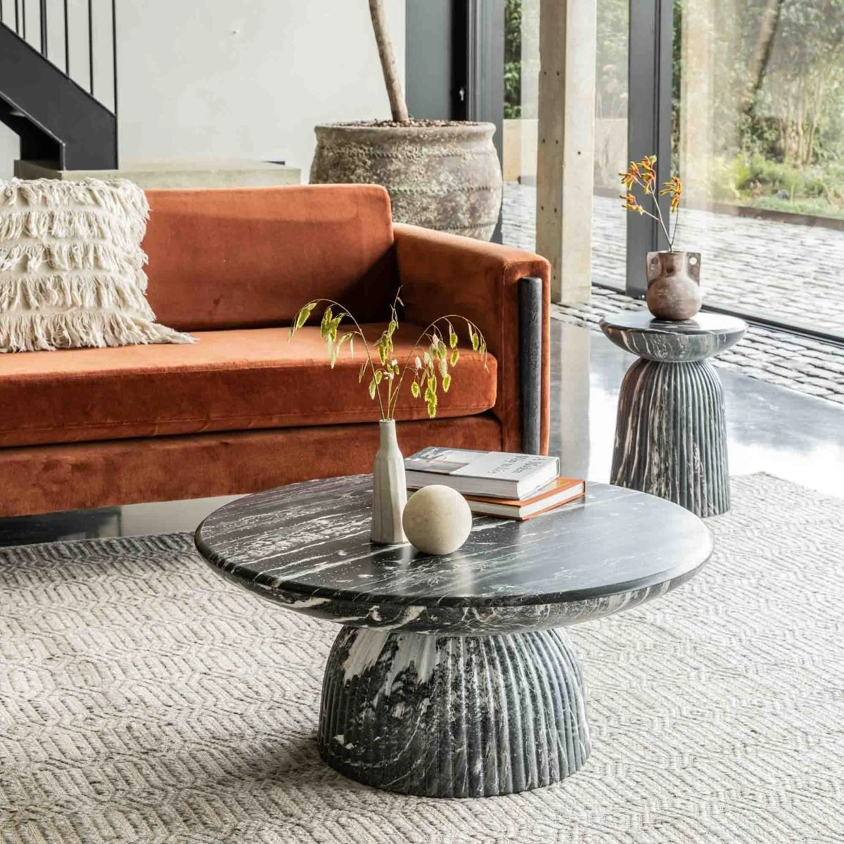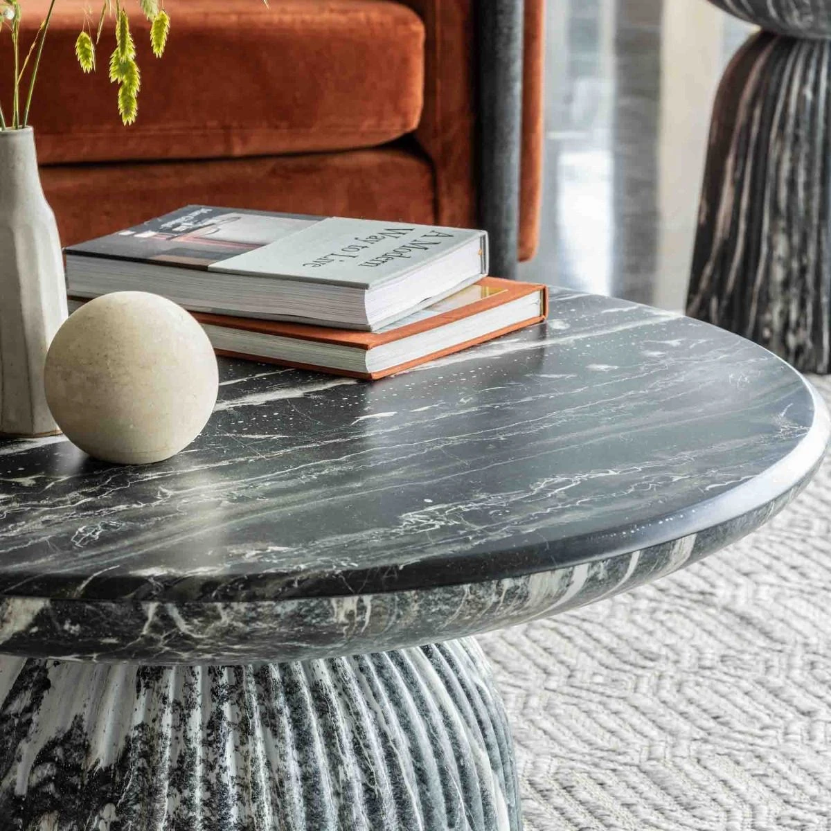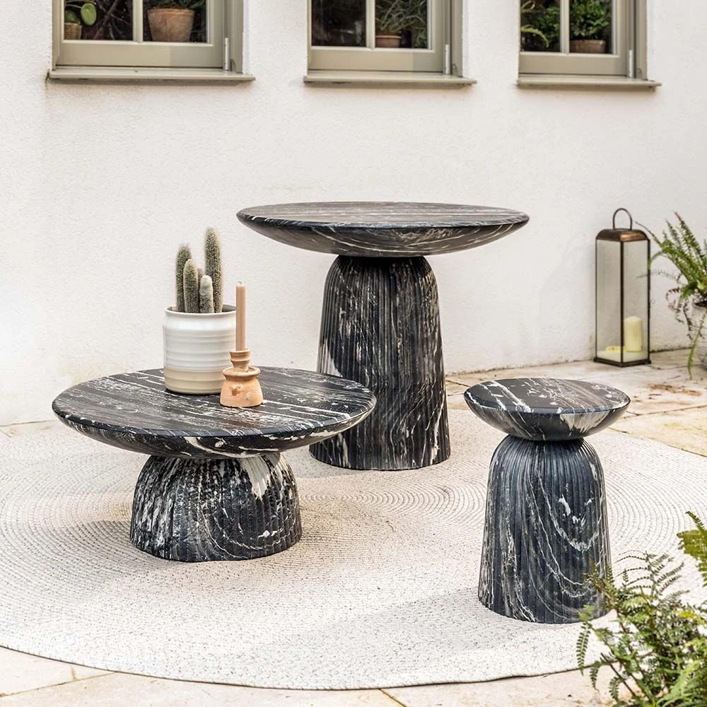 Inspired by Roman columns, this generously sized dark grey marble effect coffee table brings an elegant and classical look to indoor or outdoor spaces. It also looks great on a balcony or terrace and it’s weatherproof, so you can leave it outside all year round.