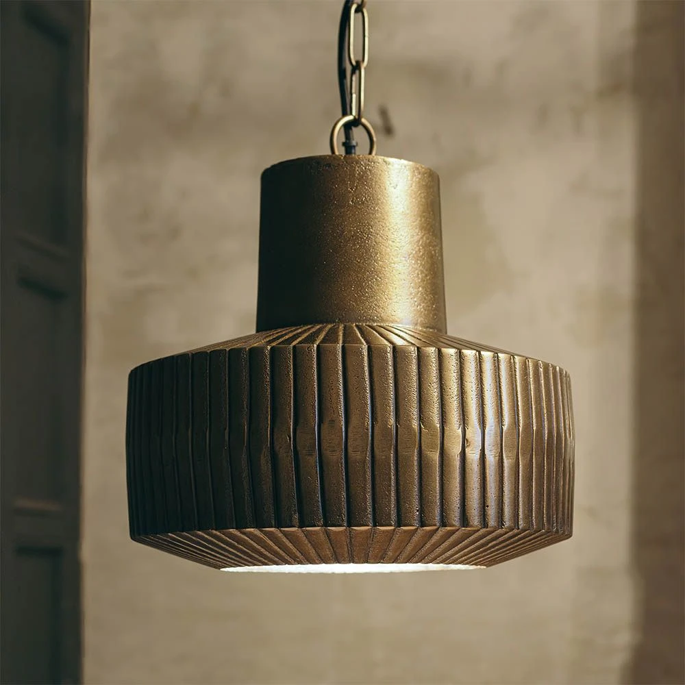 Inspired by the glamour and glitz of the Art Deco period and Modernist hanging lights, Milano is a solid metal design finished with a luxurious antique bronze effect with ridged edge detail. This gives it a textural look and feel that will bring any décor to life.