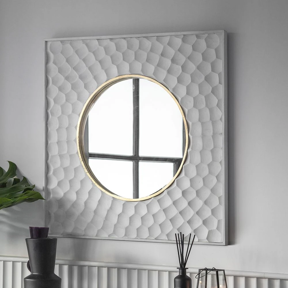 The square 3D carved wooden mirror frame will look stunning teamed with our matching Monroe sideboard for a co-ordinated feel in any interior.