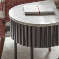 This marble top fluted metal side table can also be teamed with our matching media unit, sideboard and coffee table for a co-ordinated look.
