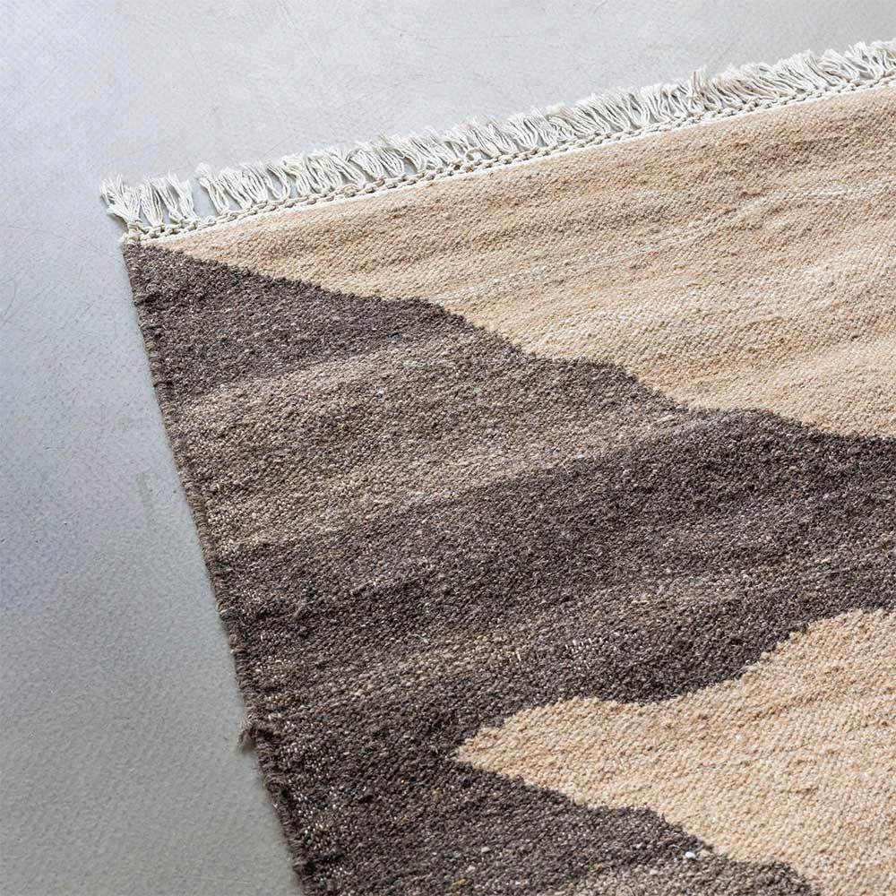 Make a statement in any room with our Neelu Flatweave Rug, which features a distinctive pattern in on-trend natural tones. Made by skilled artisans in India, the design conveys the rugged beauty and cultural richness of a tribal-inspired flatweave rug made from natural wool.