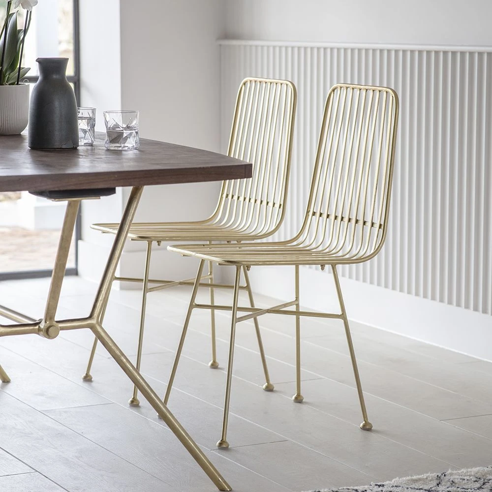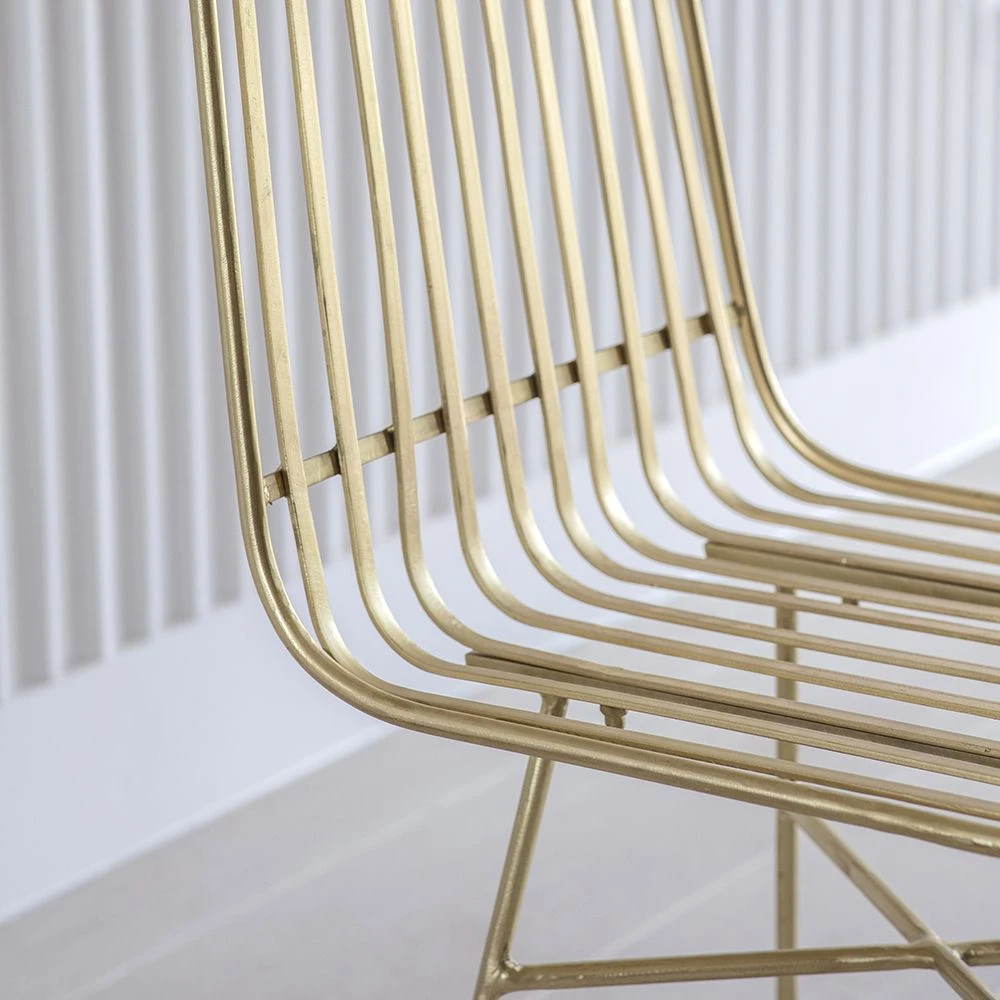This brass dining chair is expertly crafted from luxurious brass-finish iron strips. For a cohesive look in an open-plan kitchen-diner, we also have a matching Paloma barstool.