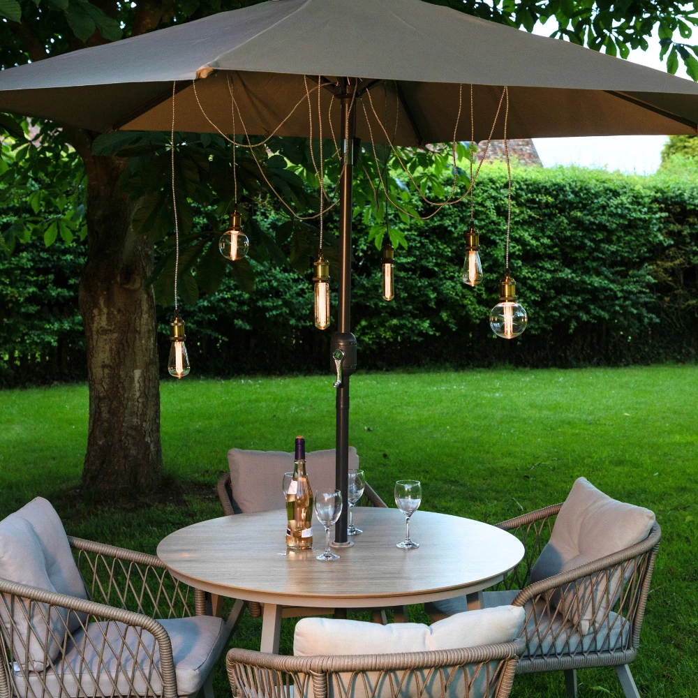 Create a cosy outside space with our Spider Parasol Bulb Lights. These battery operated outdoor lights are designed to look like traditional Edison bulbs with amber LEDs. Place them wherever you want for a warm glow in your garden.