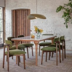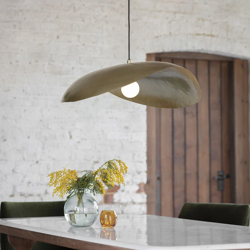 The Serene Brass ceiling light has a strong sculptural shape that creates a focal point in any room, giving directional light over the dining table, kitchen island or breakfast bar.