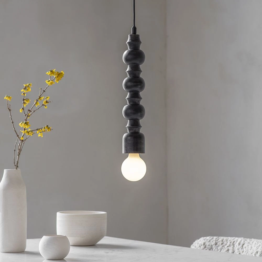 Our Spindle Pendant Light is made from sustainable solid mango wood and is hand crafted for a contemporary take on the on-trend bare bulb look. Ideal for hanging over bedside tables, a kitchen island or breakfast bar, it looks striking when hung as a single pendant light or it can be used to create extra impact when hung in a cluster or row of three.