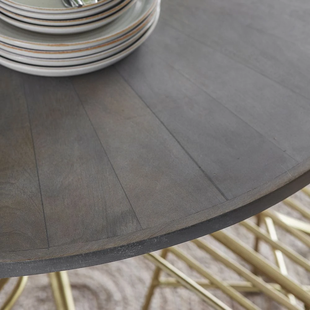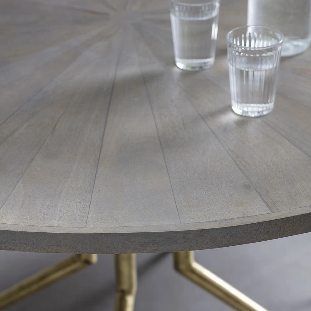 A generously sized table perfect for sociable dining with family or friends, our Sunburst Round Dining Table has a grey wash applied to the tabletop that will complement any dining room or open-plan kitchen-dining space.