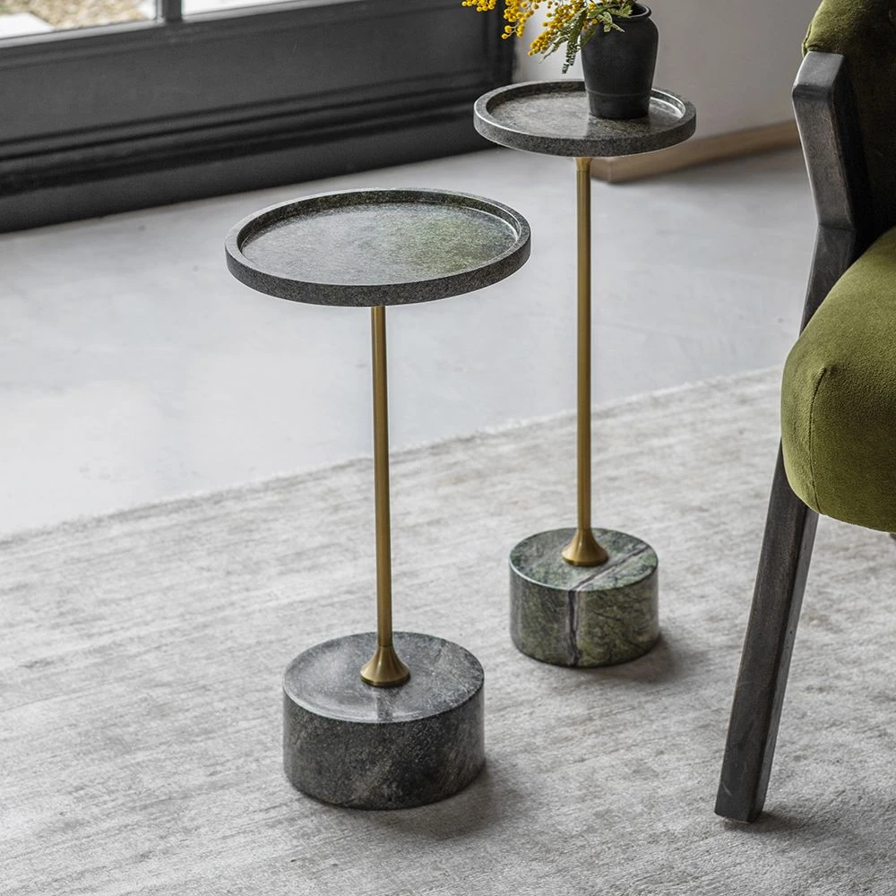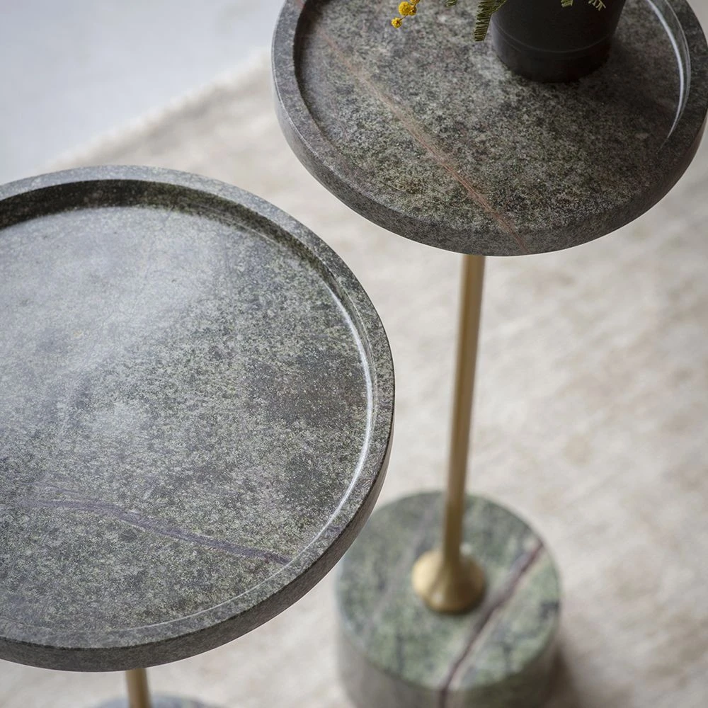 A set of sleek, streamlined side tables ideal for living areas and open-plan rooms, our Union Side Tables are so popular we’ve re-worked them for 2023 with a deep green marble. The brass powder coated stems add a luxurious touch, and the on-trend retro green marble with brown vein details is the perfect way to bring your room scheme up to date.
